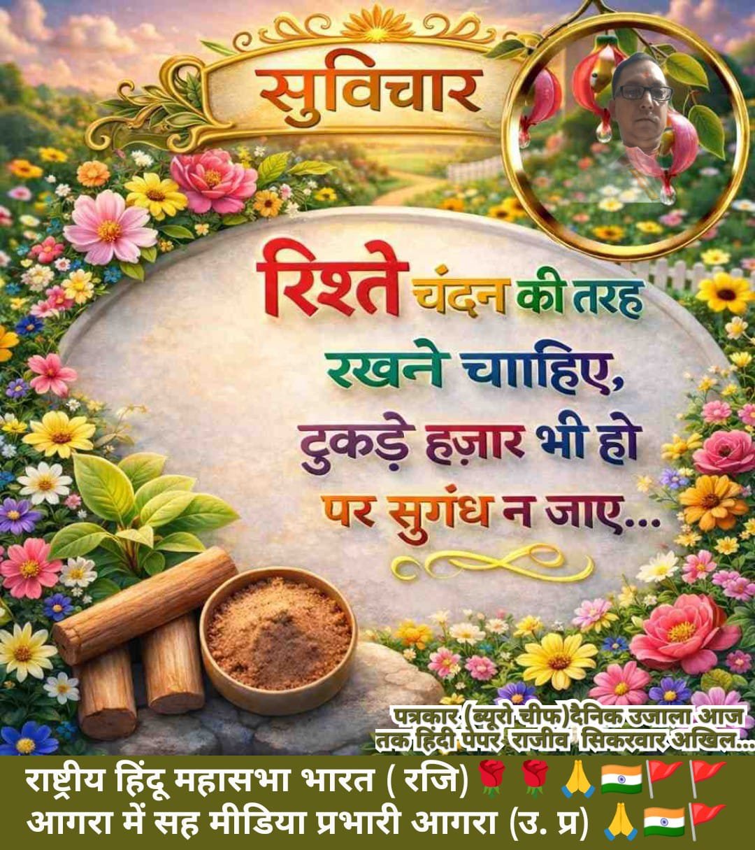 पत्रकार ब्यूरो चीफ राजीव कुमार सिंह सिकरवार आगरा उत्तर प्रदेश 🌹 🌹 🌹 🌹 🙏 🇮🇳 ✍️ 🚩 🚩 🚩